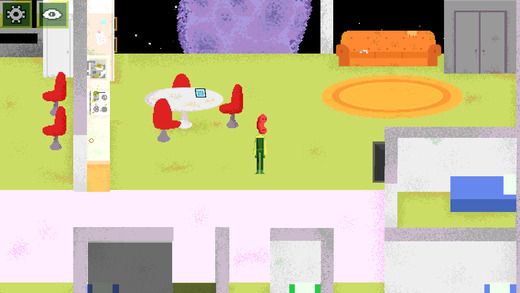 进入第二个地图后走到圆桌这里,点击获取桌上的手机,然后往右走到下一个场景,会出现一个虫子怪物是绕不开的,就直接走上去开始对战,用普通攻击就可以打赢,然后去按上方的机器开关就可以进入下一关卡