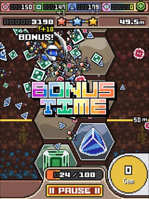 如上图中可以看到挖掘的过程中有宝石或是骷髅头在前方的道路上,宝石可以增加体力值,而骷髅头会削减体力值,尽量操控挖掘方向把所有宝石都吃到,避开骷髅头,这样就能保存较完整的体力轻松通关。
