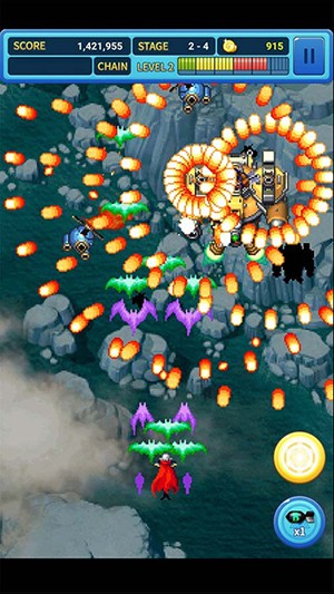 武装飞鸟2这是一款飞行战斗游戏,大家在游戏中可以进行各种攻击,游戏中关卡非常丰富,为了增加游戏体验感,玩家还可以更换战机,升级战机战斗力等等,这种游戏体验感确实不错。