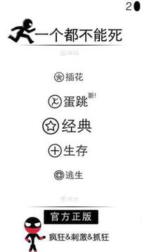 《一个都不能死》是一款单机游戏,这款游戏是一个非常考验我们手指是否灵敏的游戏,我们需要在一个合适的时间节点跳起来,才能够躲避游戏里面设置的一些小障碍,整个游戏过程中,一个人都不能死,然后跑的是远一点,那么就分数会高一点。