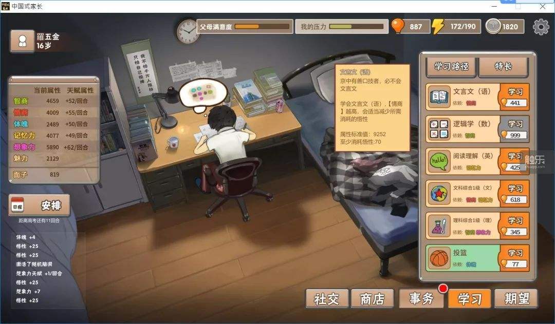 在幼儿时期的活动都是相同的,只需要好好学习基本的东西就可以了,但如果你想往体育方面发展,你就可以在幼儿时期就开始体育运动,加强锻炼。到了小学的时候同样要把学习放在第一位,在拿到好的成绩单时,玩家还可以获得很多奖励。无论你未来想选择什么样的道路,最重要的是提高自身的悟性,悟性可以为学习新的技能。那要如何次啊能提高悟性呢?