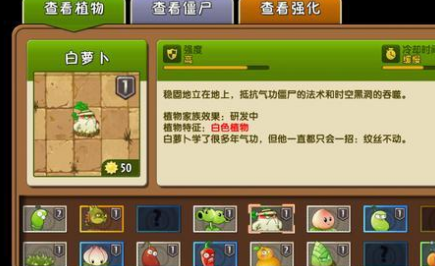 在植物大战僵尸2中玩家需要收集星星才可以解锁新的地图,穿梭到新的时空去击败僵尸,每个时空中的地图打法和僵尸都是大不相同的。在功夫世界中可以携带八个植物来走向战场。不管在什么模式选好植物是一场比赛的重中之重,而白萝卜是在这个地图中绝对需要带上的存在。因为如果没有了白萝卜我们的植物就会受到气功僵尸的伤害,随后火葫芦也是很强力的植物,火葫芦作为伤害和范围都十分强大的植物是必须要带上的,他需要玩家主动点击,火葫芦就会对一条直线的敌人喷出火焰造成高伤害。不过火葫芦的喷火是有冷却时间的,所以什么时候用就显得非常重要。