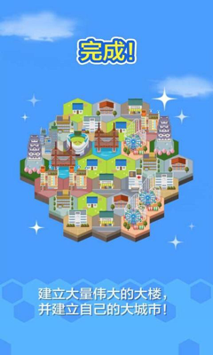 这款游戏的玩法和2048很类似,指尖在屏幕上左右滑动进行操作,玩家可以自由发挥,通过模拟建造来进行结合,当有三个或三个以上的相同建筑物放置在统一水平位置,并且紧密贴近时,这一组的建筑物都会被调平!然后组合成一个新的城市,游戏里面的各种城市都任你融合,随着城市被你不断的发展,慢慢壮大,你的分数也会越来越高,直到在六角拼盘里的城市融合无法继续为止。