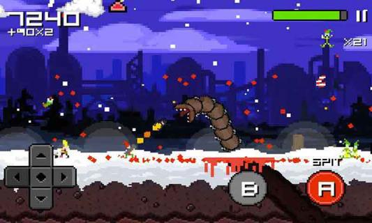 游戏中反应的是很多科幻电影中常见的镜头。场面上是很熟悉的,细节上是有些可爱的,本作是一款以蠕虫为游戏主要元素制作的动作冒险单机手游。玩家会在这个游戏里看到一些恶搞情节。整个画面以像素块的形式展现在大家面前,玩家并不是在控制圣诞老人。它是自己的巨大蠕虫。玩家需要想办法吃掉前进途中遇到的所有生物,包括一些反抗你的人类。为了让自己的角色越来越大,可以跳到更高更远的位置,从而获得更强的破坏能力和一些超能力,需要不断战斗。