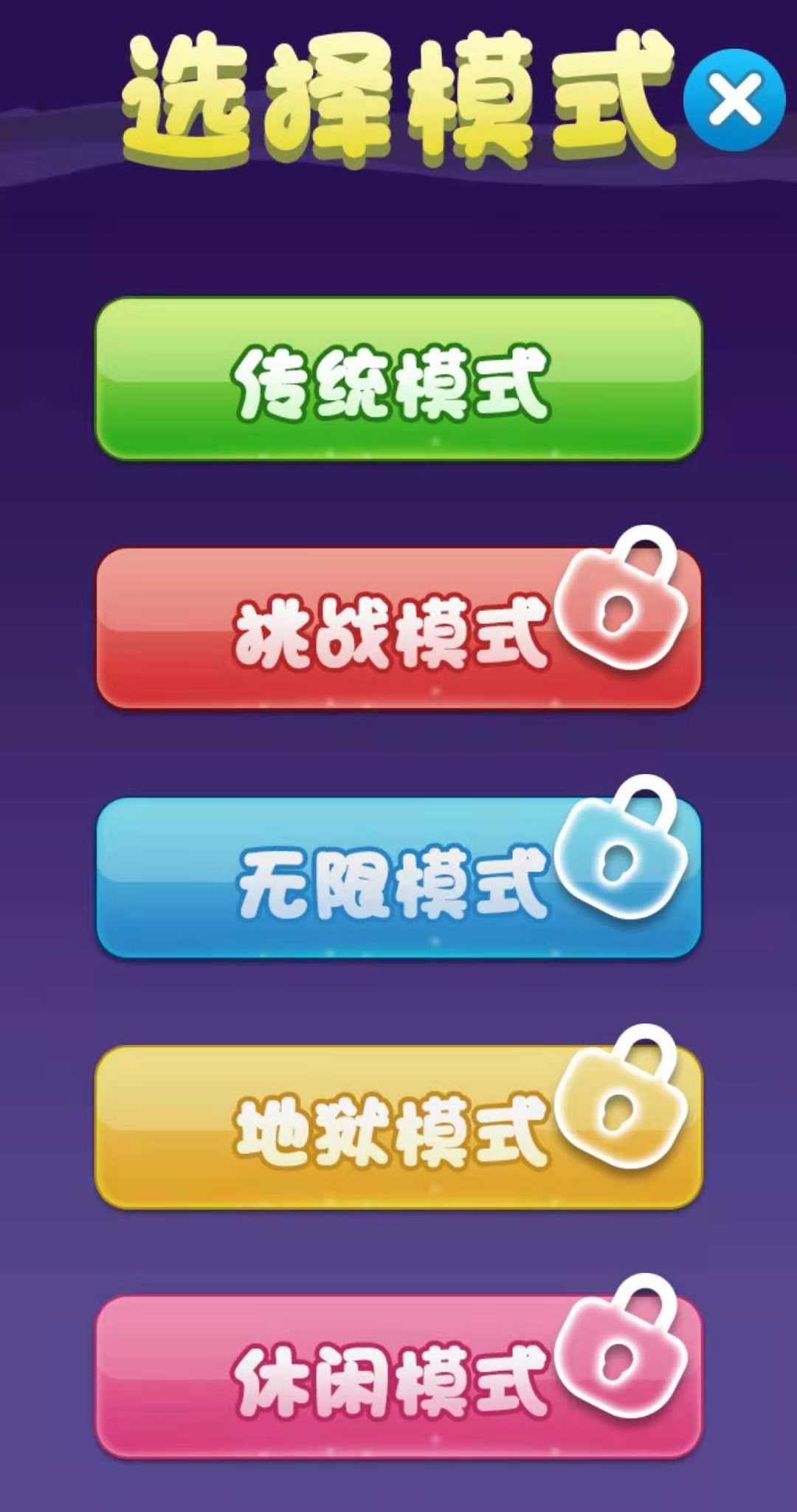 打开宠物连连看的游戏页面,出现了许多的游戏模式,比如说传统模式、挑战模式、无限模式、地狱模式以及休闲模式,后面的模式需要先解锁前面模式的关卡。游戏的玩法就是消除两个小动物一样的卡牌,但是消除过程中只能无转折或者一个转折和两个转折,三个转折的两张小动物卡牌是不能被消除的。