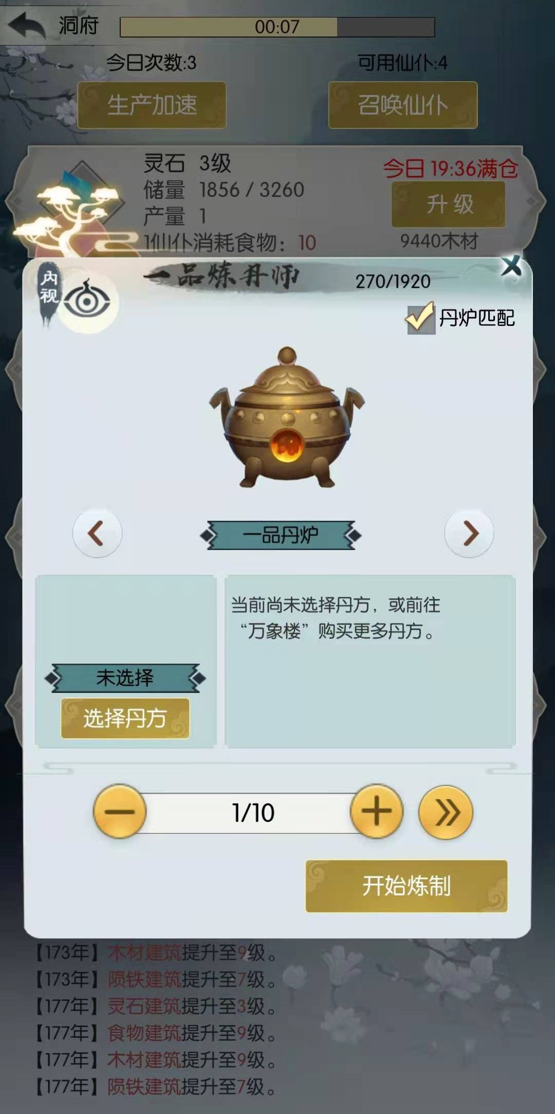 点击丹房就可以炼制丹药了,但是炼丹之前需要准备的东西有:炼丹炉、丹方、还有炼丹所需要的材料,玩家们记得购买了丹炉之后去储物袋中点开丹炉点击使用,这样丹炉才会放置到丹房中,丹方的操作也是如此,需要去购买丹方然后去使用,最后到炼丹的时候才能使用这些东西,首先打开丹房还需要选择我们想要炼制丹药的丹方,最后看材料够不够再选择炼制多少数量,最后点击炼制就可以等待丹药的完成了。