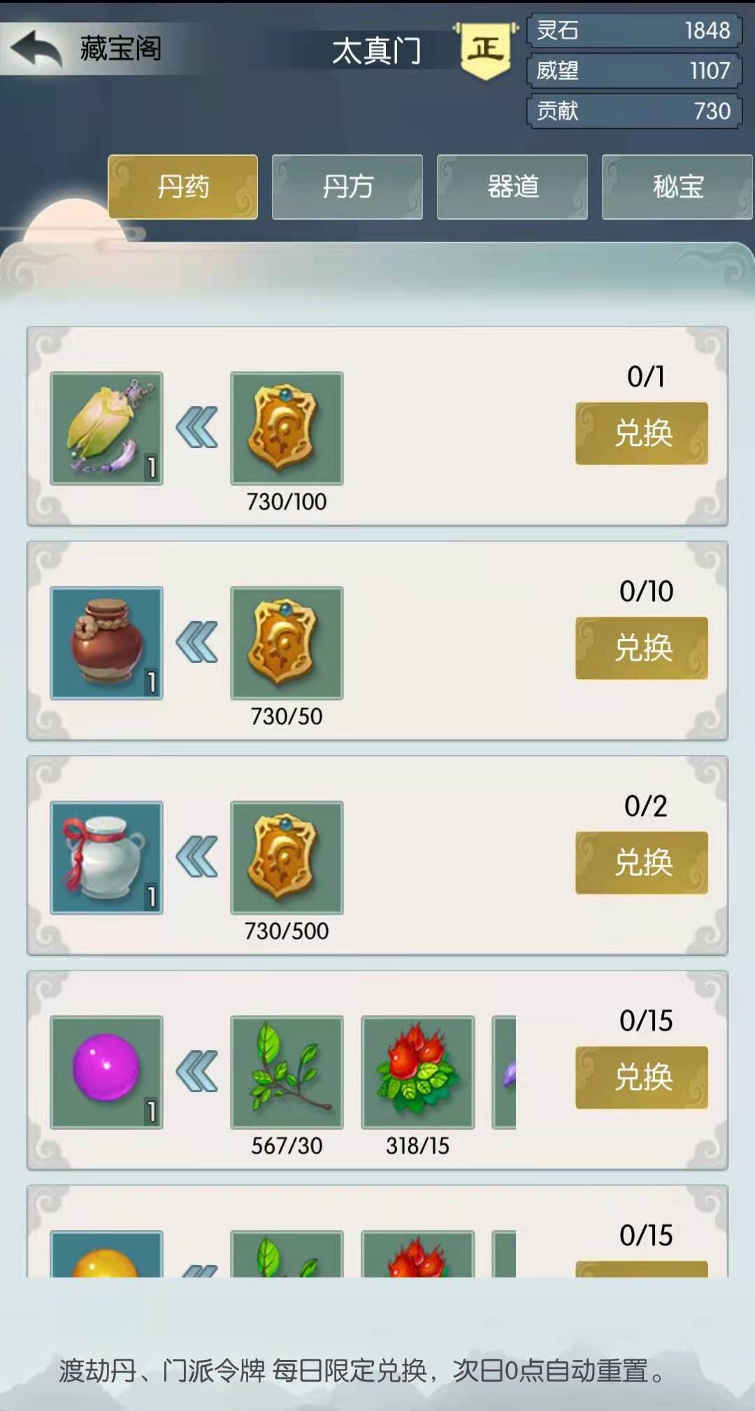 最后一个就是太真门了,在太真门里玩家可以使用门贡值兑换一些物品,还可以使用储物袋里面的花花草草兑换。但是小编从来没有兑换过,小编觉得这些可以兑换的物品不是非常的重要,其次小编想多攒点门贡值提升职位去学习门派绝学。所以玩家们可以根据自己的需要进入太真门看看自己是不是需要这些物品,再去进行兑换。