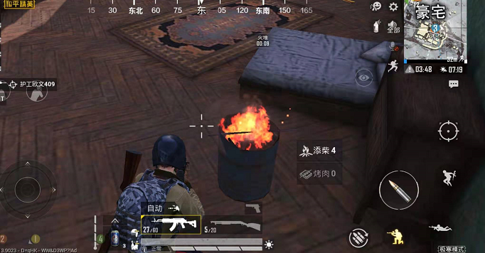 在极寒模式中增加了很多其他模式中没有的物资,有些物资是我们在极寒模式中必备的,他们可以帮助我们度过暴风雪的来袭,首先就是随处可以见到的树枝了,无论是资源丰富的地区,还是在低资源的房区,都可以找到树枝这个材料,在一场比赛中带上十几个树枝就是足够的了,这些树枝也不会特别占用我们的背包,所以玩家们也不必担心树枝占用背包的问题了。其次在地图中会随机出现鹿和鸡这些动物,使用武器可以将他们击杀,掉落鹿肉或者鸡肉,将这些肉放入炉火中也可以增加火焰的时间,同时熟肉还可以为我们增加热量。