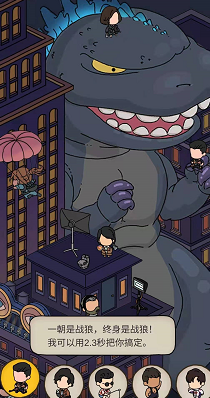 第一个需要我们找的人物,光是看他的外形想必大家也都猜到了。双手拿了一个棒棒糖和一个斧头,还有着长长的三七分头发,没错这就是周星驰所主演的功夫电影的元素。这个电影小编我都不知道看过有多少遍了,熟悉的一幕幕场景都还历历在目。在秋季特别关卡中的寻物有着文字提示来缩小我们寻物的范围的,点击第一个小人,就是功夫中的经典台词,其中有变化的是说不许喷火。我们就要从这一点入手,是要找火或者是带火的东西吗?而超大的哥斯拉则是我们的目标,我们的星爷也是在哥斯拉小手旁的楼顶摆着pose。