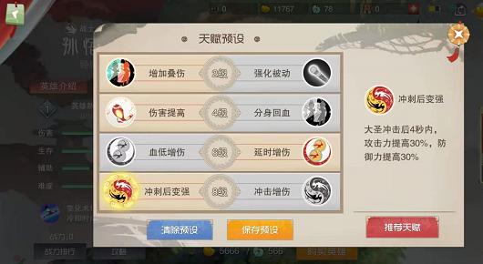 在和敌人对峙的期间普通攻击减少我们的冷却就能让我们释放更多的技能,这样的悟空成神也不是没有原因的。在孙悟空的天赋选择上一二二一,是他最好的天赋选择,增加了大量伤害的同时还能让孙悟空有着很强的恢复能力,即使是面对多个英雄也能与其展开战斗。同时第四个天赋还能为孙悟空提升不少的防御这样的悟空才是真正的拥有主角光环的角色。