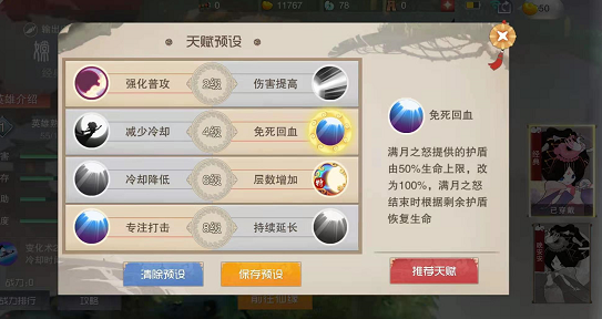 作为肉盾嫦娥,进入敌方的包围中却不会被击杀就是最快乐的事情了,所以这时候我们的天赋则是为一二二四,这样的天赋选择,普攻的伤害增加和被动层数的增加都会让嫦娥拥有更高的伤害。在使用嫦娥时,使用二技能作为终结技往往可以一次收获到很多的人头,四杀所向无敌也不在话下。