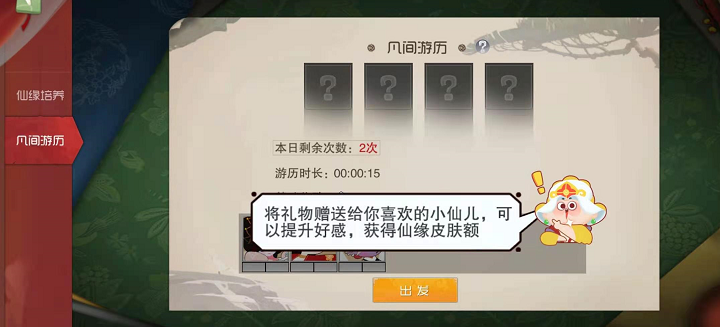 首先免费获得皮肤的地方就是仙缘培养中领取了,在仙缘中你可以给你的英雄送礼物来增加于与他们的亲密度,当玩家与英雄的亲密值到达最高时就可以免费领取仙缘皮肤了,仙缘皮肤对于每一个英雄来说在商城的价钱都是最贵的了,但玩家可以通过赠送礼物的方式增加亲密度免费获取,这样的白嫖活动玩家们怎么能错过呢?礼物获取的方式也是有很多种的,其中在凡间游历中就可以获得大量的礼品和其他奖励,将自己所拥有的英雄派出凡间游历,每一个英雄都有着两点体力出发游历,而玩家每天有五次游历的机会,一次游历可以最多派遣四名英雄。根据这样的规则,玩家每日获得最多奖励就需要十二个英雄来参加了,这样每天就会固定获得二十个礼品,这样的方法就可以让玩家更快的获得自己想要的皮肤了。