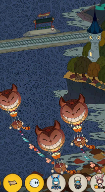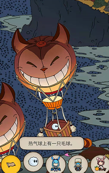 在卷轴下一个物品是一个非常可爱的毛球,他还有亮晶晶的眼睛,找到这样小的物品只要有文字提示也是非常容易了,根据文字提示我们可以知道我们的白色小毛球在热气球上面,这个热气球就是我们首要寻找的线索了,将场景拖到最左侧,我们就可以看到有三个小恶魔形状的热气球漂浮在空中,而我们的小毛球也在其中一个热气球里。