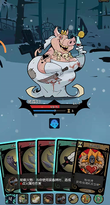 玩家可以看这一场与猪寡妇的对战,小编是一张牌还没有出,她的血量就已经少了接近一半,这就是船载火炮的威力。在卡牌选择上,装备牌是我们的必备卡牌了,要想成为武器大师,就要有超多的武器,不管这些武器的效果都是什么,在我们使用武器牌的时候都会因为船载火炮的祝福效果对敌人造成火属性的伤害,况且他们都还有着很不错的特殊效果。在行动力牌上短兵相接和绝妙收藏是我们必备的卡牌,在玩家使用他们时可以让我们获得牌库之外的装备,同样可以为我们触发船载火炮的高额伤害。