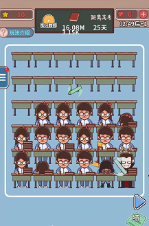 在玩家解锁特长生后,他们就会出现在教室之中,和同学一起学习了,有了他们的加成,可以让我们的体力恢复变快,有的则会让偷懒睡觉的学生更早的醒来,每一个不同的特长生都有着他们的特点,为了让我们教室中的学生能有更好的成绩表现,产出更多的知识点,就快出门巡视,通过更多的关卡来招揽特长生进入教室吧!