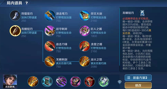 首先在打野刀的选择上,不同类型的打野就有多样性的选择,而正确的选择打野刀才能让我们刷野的速度有所提升,经济也才有所提升。对于很多打野英雄来说,弃鳞短刃就是一个非常好的选择,这个打野装备的出现,让打野英雄帮忙推线不是蹭经济的理由了,并且在打野速度上也有非常大的提升。在弃鳞短刃升级为龙鳞利剑后,这件装备的真正实力就展现出来了,被动狩猎可以为打野英雄在对野怪造成伤害时附带真实伤害的灼伤效果,这个效果同时对英雄也会触发,对于像曜,这类前期刷野较慢有着范围性伤害的英雄有着非常大的提升,当技能对野怪造成伤害后,对野怪都会造成真实伤害的灼烧,可以说是打野神器了,这样你还怕经济赶不上其他人吗?不要急,这件装备还有其他被动一定能帮助你经济大大的提升。