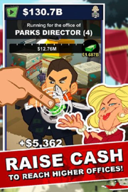 所以大家要尽量选择一些为民服务的选项,还能够让其获得一些商业的赞助。当玩家的职位有所上升时,就能够赚的更多的钱,并且可以坐进更大的办公室。所以玩家在玩掌上竞选时主要游戏任务就是,想尽一切办法让游戏角色能够快速升职。