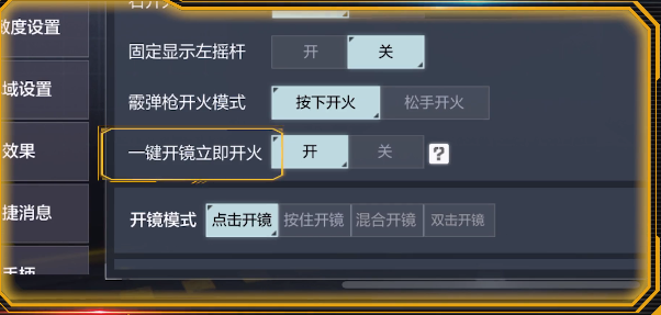 其中一键开镜开火对新手来说是非常友好的一种设置。一般射击类玩家习惯的操作键位是开镜键和开火键分开的,遇到敌人时需要按下两个不同的键位才能够精准的开镜开火射击。对于二指玩家而言需要一个练习的过程。但使命召唤手游给二指玩家提供了全新的操作体验-一键开镜,只需按下一个键位即可同时开镜开火,精确攻击敌人。同时玩家还可以进行移动射击,提升了操作的流畅性,大幅度降低了玩家的操作难度。而对于习惯使用枪械腰射开火的玩家,这里推荐给枪械装配精确腰射进阶配件。其效果是枪械腰射攻击中敌人后,能够降低子弹散射范围,找回熟悉的手感。由于默认设置情况下一键开镜是开镜完成后才会进行开火。中间有一段间隔时间,而在高水平的对局中,这很短的间隔时间对玩家而言会有非常大的影响。因此玩家可以在设置-基础设置中找到一键开镜立即开火,这样就可以点击一键开镜的同时就实现开火了,算是补齐了一键开镜的小短板。