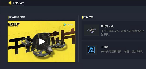 干扰芯片最强大的就是他的主动技能了,在玩家使用主动技能的时候就可以释放出干扰无人机,这个无人机可以,让敌人同时对敌人进行干扰,而被干扰的敌人则不能开镜攻击,同时视线也会被受到阻碍,这对于中距离的射击来说就是非常大的影响了,玩家在和敌人中门对狙的时候,则可以使用干扰芯片的主技能放出无人机,让敌人丧失它的战斗力。