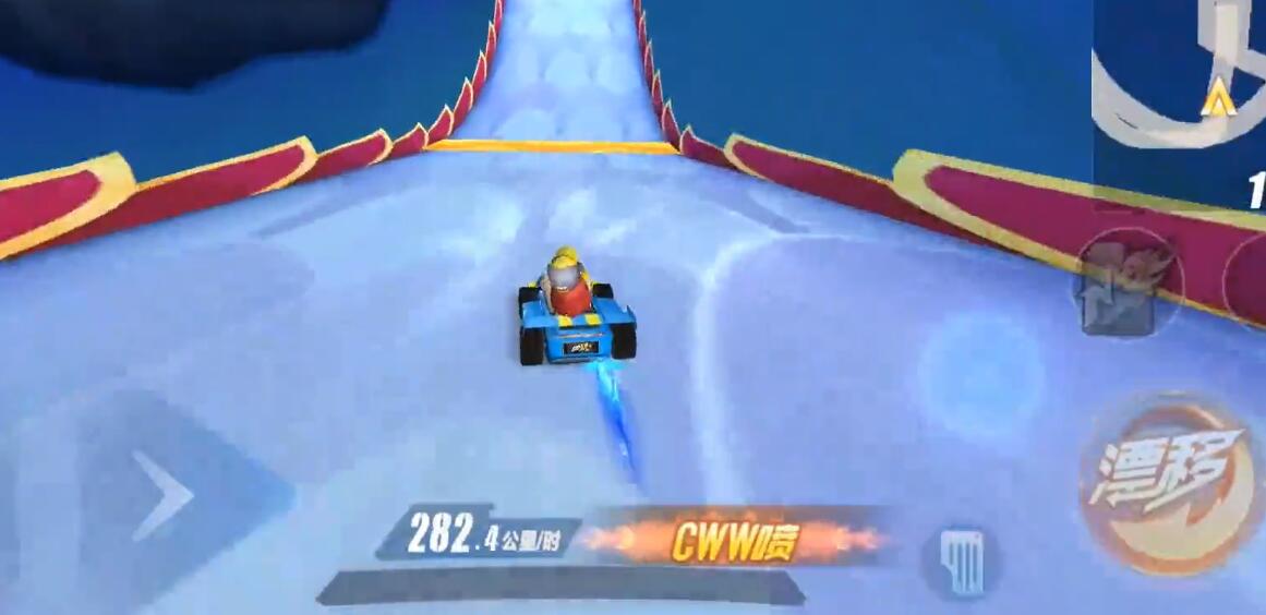 之后我们会来到一个高跳台,这里我们能够触发空喷落地喷的技巧进行提速,如果车速够快的话是能够进行氮气延续的!