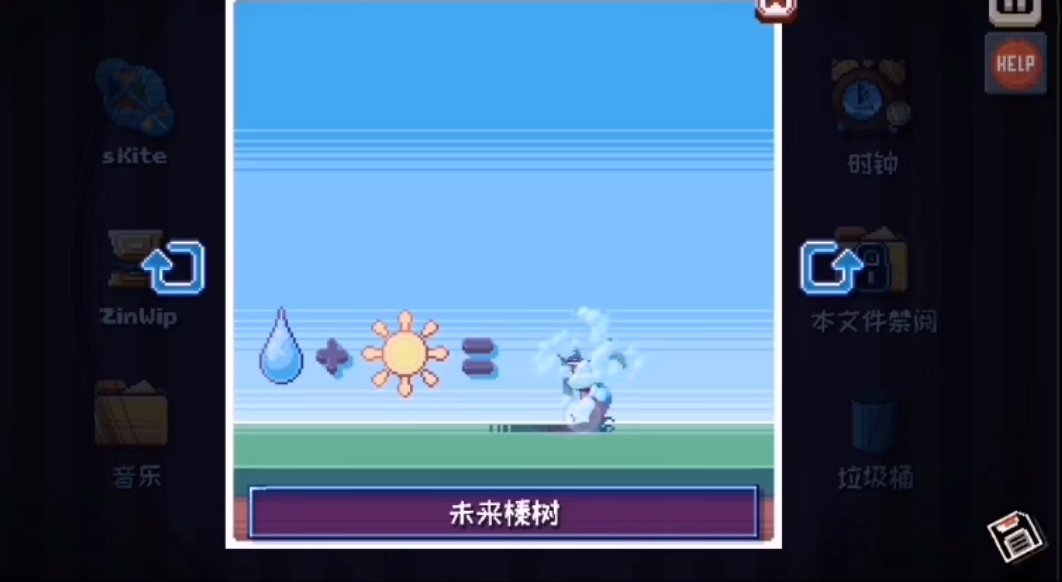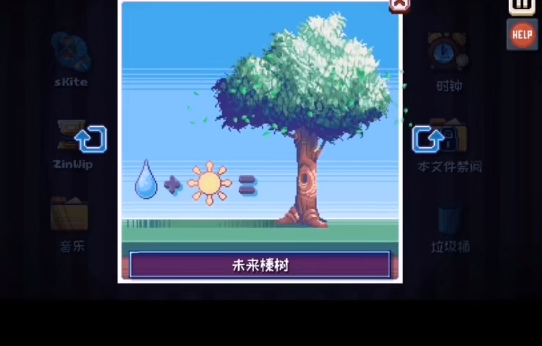 现在我们终于想办法得到阳光了,让未来榛树成熟的两个条件:水和阳光我们都得到了,这时候我们就可以去尝试去得到榛树。我们再次回到游戏的桌面,然后打开图片文件夹再打开未来榛树图片,这时候我们发现已经有阳关了,但是我们现在没有水,这时候我们需要再次回到音乐播放器并播放自然之声音乐,使用金色奖杯装一点动画中地面上的积水,然后再回到未来榛树图片中,将奖杯中的水倒在榛树苗上,突然想起一阵震动,榛树苗一瞬间就长大了,这时候我们就通过了这一章节。