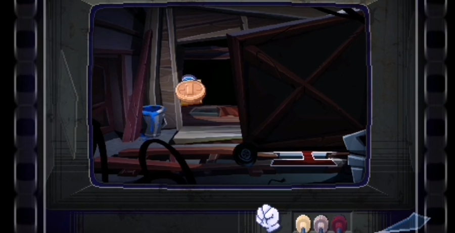 在这里没有游戏的第四十一章中,我们通过捶打威廉先生惨叫声字幕开头的红色字母H,终于获得了一个长得像火车铁轨的东西,下面我们就来试试这个红色的字母H到底能不能作为火车铁轨来将轨道车修好。
