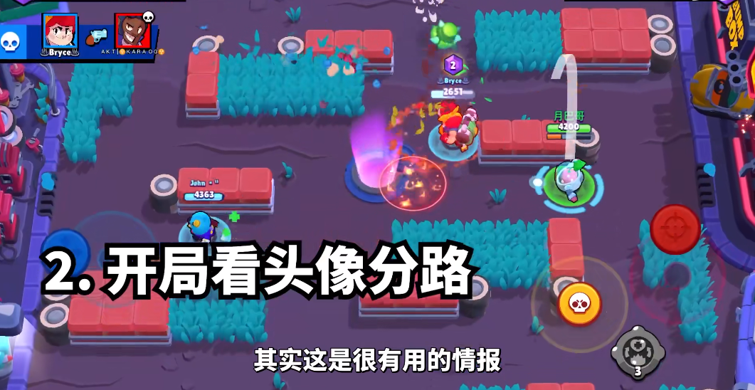第二招:开局分析头像情报。在3v3模式每局游戏的开始,系统会显示所有玩家的英雄头像,其实这时很有用的情报,因为头像的左中右顺序每次都是对应每个英雄的出生站位的,在路人局中,玩家一般会直接按照自己出生的位置决定分路,所以我们看头像就可以知道谁最可能去哪里。
