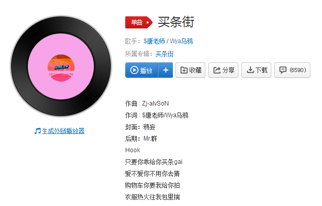 出自$唐老师 / Wya乌鸦合唱的歌曲“买条街”