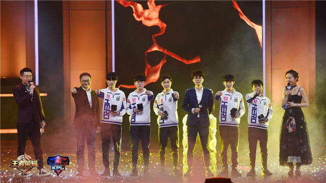 随后,腾讯互娱移动电竞业务部总经理、KPL联盟主席张易加为冠军队伍Hero久竞颁发由六福珠宝打造的KPL总冠军戒指,腾讯互娱天美L1工作室总经理、《王者荣耀》制作人李旻为FMVP获得者久诚颁发奖杯。