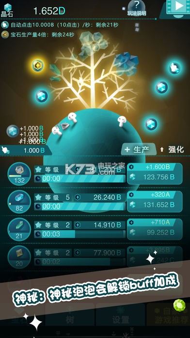▲通过点击和收取,在神木之上培育具有神秘力量的宝石,保护并不断培育新品宝石。